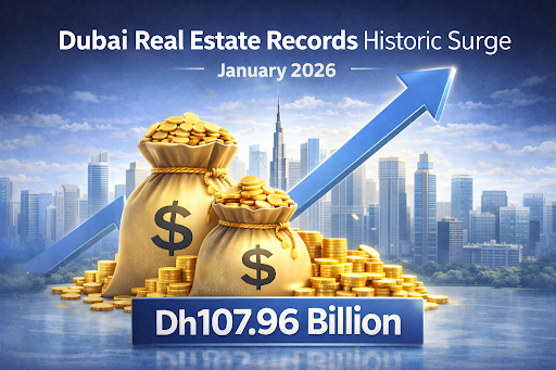 Dubai’s real estate market has kicked off 2026 with an unprecedented surge, achieving the highest monthly transaction value in the emirate’s history. According to data released by the Dubai Land Department (DLD), total real estate transactions in January reached Dh107.96 billion, nearly double the Dh57.89 billion recorded in the same month last year. This historic performance underscores the emirate’s sustained appeal to both domestic and international investors.